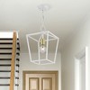 Collection: Devonshire, Material: Steel, Finish Color: White/Satin Brass, Width: 10", Height: 15.75", Length: 10", Hanging Method: Chain, Chain Length: 36", Lamping Type: Incandescent, Number Of Bulbs: 1, Wattage: 100 Watts, Moisture Rating: Dry Rated, Desc: The Devonshire collection hints at a casual vibe. This one light square frame lantern is shown in white. It will be a great feature in your modern loft or cabin as well as any transitional style interior. Canopy Included: Yes / Canopy Diameter: 5.13 / Chain Length: 36.00. ,