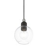 Collection: Downtown, Material: Steel, Finish Color: Black/Brushed Nickel, Width: 6.5", Height: 14.5", Hanging Method: Cord, Lamping Type: Incandescent, Number Of Bulbs: 1, Wattage: 60 Watts, Moisture Rating: Dry Rated, Desc: Bring a refined lighting style to your interior with this downtown collection single light mini pendant. Shown in a black finish with brushed nickel finish accents and clear sphere glass.,