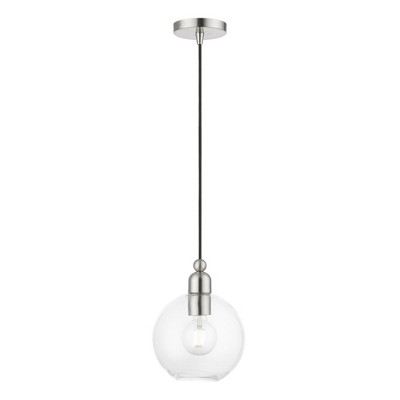Collection: Downtown, Material: Steel, Finish Color: Brushed Nickel, Width: 16", Height: 9", Lamping Type: Incandescent, Number Of Bulbs: 3, Wattage: 60 Watts, Moisture Rating: Dry Rated, Desc: Bring a refined lighting style to your interior with this downtown collection three light semi flush. Shown in a black finish with brushed nickel finish accents and clear sphere glass.,