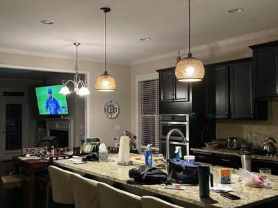 I love these! Got two for my kitchen island. Still trying to figure out the right bulb shading and wattage-they're a bit dark. Use at least 100w.