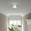 Collection: Edgemont, Material: Steel, Finish Color: Brushed Nickel, Width: 7", Height: 6", Hanging Method: Flush, Lamping Type: Incandescent, Number Of Bulbs: 1, Wattage: 100 Watts, Moisture Rating: Dry Rated, Desc: This one light flush mount from the Edgemont collection is a fine and handsome fixture that features white alabaster glass. Edgemont is comprised of traditional iron forms in a brushed nickel finish. Canopy Included: Yes / Shade Included: Yes / Canopy Diameter: 7 x 5. ,