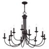 This elegant yet classical large 2-tier chandelier is impeccably designed and crafted. Perfectly suitable above a dining room or a kitchen table with traditional or transitional interiors. Material: Steel, Finish Color: Bronze, Width: 36", Height: 29", Chain Length: 36", Lamping Type: Incandescent, Number Of Bulbs: 12, Wattage: 60 Watts, Moisture Rating: Dry Rated