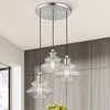Collection: Everett, Material: Steel, Finish Color: Brushed Nickel/Polished Chrome, Width: 20", Height: 15", Hanging Method: Cord, Lamping Type: Incandescent, Number Of Bulbs: 3, Wattage: 180 Watts, Moisture Rating: Dry Rated, Desc: The Everett three light pendant chandelier suspends simply and will adapt well over a kitchen countertop, in the living room, foyer or a dining room. It is shown in a shiny black finish with chrome finish accents and hand blown clear art glass.,