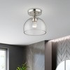 Collection: Glendon, Material: Steel, Finish Color: Brushed Nickel, Width: 8.25", Height: 8", Lamping Type: Incandescent, Number Of Bulbs: 1, Wattage: 60 Watts, Moisture Rating: Dry Rated, Desc: This one light semi-flush mount from the Glendon collection has understated elegance. It features minimal details, clear curved glass with an antique brass finish and can fit into any decor.,