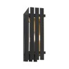 Collection: Greenwich, Material: Brass, Finish Color: Black/Satin Brass, Width: 8", Height: 17", Depth: 5.5", Height From Outlet Box: 8.5", Backplate Width: 6.38", Backplate Length: 14", Lamping Type: Incandescent, Number Of Bulbs: 1, Wattage: 100 Watts, Moisture Rating: Dry Rated, Desc: The Sheffield is defined by its bold geometric design and black finish with satin brass accents. The solid brass outdoor wall lantern features a clear glass cylinder under the striking cut-out design. Light shines from the top and bottom, as well as from the open areas of the design in the middle. An elegant sculptural look for your front entryway or outdoor living spaces. Shade Included: Yes. ,