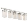 Collection: Harding, Material: Steel, Finish Color: Brushed Nickel, Width: 42.5", Height: 8.5", Depth: 6.25", Height From Outlet Box: 6.25", Backplate Width: 9.5", Backplate Length: 4.75", Lamping Type: Incandescent, Number Of Bulbs: 5, Wattage: 100 Watts, Moisture Rating: Dry Rated, Desc: The transitional style of the Harding five light vanity light features an eye-catching satin opal white glass shade, floating inside a unique double forged square design which comes in a brushed nickel finish. This light can be mounted up or down. Mounting Direction: Up/Down / Shade Included: Yes. ,