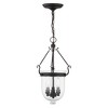 Collection: Jefferson, Material: Steel, Finish Color: Black, Width: 10", Height: 20", Hanging Method: Chain, Chain Length: 36", Lamping Type: Incandescent, Number Of Bulbs: 3, Wattage: 180 Watts, Moisture Rating: Dry Rated, Desc: Carrying the vision of rich opulence, the Jefferson has evolved through times remaining a focal point of richness and affluence. From visions of old time class to modern day elegance, the bell jar remains a favorite in several settings of the home. Using hand blown clear glass...the possibilities are endless to find a piece that matches your desired personality and vision. Canopy Included: Yes / Shade Included: Yes / Canopy Diameter: 6.00. ,