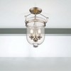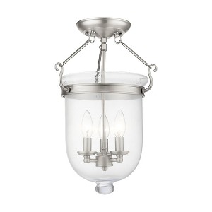 Collection: Jefferson, Material: Steel, Finish Color: Brushed Nickel, Width: 12", Height: 17", Lamping Type: Incandescent, Number Of Bulbs: 3, Wattage: 60 Watts, Moisture Rating: Damp Rated, Desc: Carrying the vision of rich opulence, the Jefferson has evolved through times remaining a focal point of richness and affluence. From visions of old time class to modern day elegance, the bell jar remains a favorite in several settings of the home. Using hand blown clear glass...the possibilities are endless to find a piece that matches your desired personality and vision. Canopy Included: Yes / Shade Included: Yes / Canopy Diameter: 6.00. Canopy Diameter: 6. ,