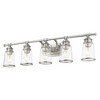 Collection: Lawrenceville, Material: Steel, Finish Color: Brushed Nickel, Width: 35.5", Height: 8.25", Depth: 6.5", Height From Outlet Box: 5", Backplate Width: 7.75", Backplate Length: 4.5", Lamping Type: Incandescent, Number Of Bulbs: 5, Wattage: 100 Watts, Moisture Rating: Dry Rated, Desc: Our Lawrenceville collection features a retro industrial design, reminiscent of 19th century lighting. This five light bath vanity comes in a black finish and clear seeded glass.,