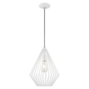 Collection: Linz, Material: Steel, Finish Color: White, Width: 11.5", Height: 21", Hanging Method: Cord, Lamping Type: Incandescent, Number Of Bulbs: 1, Wattage: 60 Watts, Moisture Rating: Dry Rated, Desc: The stunning dimension make this contemporary mini pendant a modern home lighting choice. The open, bronze geometrical shade design allows an easy flow of light to shine over a dining room table or kitchen island.,