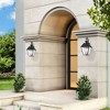 Collection: Mansfield, Material: Brass, Finish Color: Black, Width: 15", Height: 27.5", Depth: 15.75", Height From Outlet Box: 11.75", Backplate Width: 4.75", Backplate Length: 9.75", Lamping Type: Incandescent, Number Of Bulbs: 4, Wattage: 60 Watts, Moisture Rating: Dry Rated, Desc: With stunning seeded glass and a charcoal finish, this outdoor wall lantern will make an elegant addition to any outdoor space. Formed from solid brass & traditionally-inspired, this downward hanging outdoor wall lantern is perfect for a driveway, back porch or entry way. Shade Included: Yes. ,