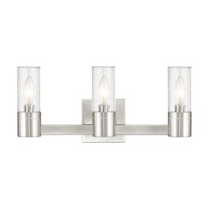 Collection: Midtown, Material: Steel, Finish Color: Brushed Nickel, Width: 17.5", Height: 7.75", Depth: 4", Height From Outlet Box: 5.5", Backplate Width: 4.5", Backplate Length: 4.5", Lamping Type: Incandescent, Number Of Bulbs: 3, Wattage: 60 Watts, Moisture Rating: Dry Rated, Desc: The Midtown three light bath fixture in polished chrome finish with clear ribbed glass shade offers a mix of the classic and the modern. Perfect for a contemporary home or a traditional entryway, this transitional fixture is as versatile as it is appealing. Mounting Direction: Up/Down / Shade Included: Yes. ,
