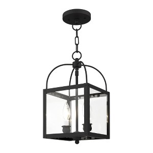 Collection: Milford, Material: Steel, Finish Color: Black, Width: 8", Height: 15", Length: 8", Hanging Method: Chain, Chain Length: 24", Lamping Type: Incandescent, Number Of Bulbs: 2, Wattage: 120 Watts, Moisture Rating: Dry Rated, Desc: Our Milford collection is an elegant transitional complement to your traditional or modern decor. This model features a hand-worked steel construction and a handsome Scandinavian gray finish. Canopy Included: Yes / Shade Included: Yes / Canopy Diameter: 5.00. ,