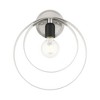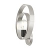 Collection: Modesto, Material: Steel, Finish Color: Brushed Nickel, Width: 12", Height: 14", Depth: 3.5", Height From Outlet Box: 11.5", Backplate Width: 5.13", Backplate Length: 0.75", Lamping Type: Incandescent, Number Of Bulbs: 1, Wattage: 60 Watts, Moisture Rating: Dry Rated, Desc: The Modesto collection hints at a mid-century modern vibe. It features steel straps that form beautiful circular shapes. The exposed bulbs and two-toned combition of finishes create a fashioble statement for todays interiors. This single-light wall sconce comes in a bronze finish with a satin brass accent. It will look fantastic in your mid-century modern loft living room, hallway, bathroom or any contemporary style interior.,