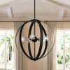 Collection: Modesto, Material: Steel, Finish Color: Black/Brushed Nickel, Width: 24", Height: 28.75", Hanging Method: Stem, Lamping Type: Incandescent, Number Of Bulbs: 5, Wattage: 300 Watts, Moisture Rating: Dry Rated, Desc: The Modesto collection hints at a casual mid-century modern vibe. It features steel straps that form beautiful circular shapes. The exposed bulbs and two-toned combination of finishes create a fashionable statement for today�s interiors. This five-light globe pendant chandelier is shown in a black finish with brushed nickel accents. It will look fantastic in your mid-century modern loft living room, dining room, kitchen or any contemporary style interior.,