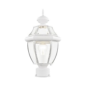 Collection: Monterey, Material: Brass, Finish Color: White, Width: 8.5", Height: 16.5", Lamping Type: Incandescent, Number Of Bulbs: 1, Wattage: 100 Watts, Moisture Rating: Dry Rated, Desc: The Monterey outdoor lighting features clean, crisp lines complemented by the graceful curves of beveled glass. Crafted from sturdy solid brass this handsome colonial styling makes this fixture a perfect addition to your outdoor spaces. Shade Included: Yes. ,