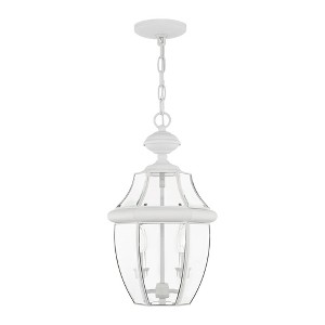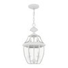 Collection: Monterey, Material: Brass, Finish Color: White, Width: 10.5", Height: 19", Chain Length: 36", Lamping Type: Incandescent, Number Of Bulbs: 2, Wattage: 60 Watts, Moisture Rating: Dry Rated, Desc: The Monterey outdoor lighting features clean, crisp lines complemented by the graceful curves of beveled glass. Crafted from sturdy solid brass this handsome colonial styling makes this fixture a perfect addition to your outdoor spaces. Canopy Included: Yes / Shade Included: Yes / Canopy Diameter: 5.00. ,