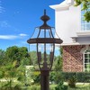 Collection: Monterey, Material: Brass, Finish Color: Bronze, Width: 12.5", Height: 23.5", Lamping Type: Incandescent, Number Of Bulbs: 3, Wattage: 60 Watts, Moisture Rating: Dry Rated, Desc: The Monterey outdoor lighting features clean, crisp lines complemented by the graceful curves of beveled glass. Crafted from sturdy solid brass this handsome colonial styling makes this fixture a perfect addition to your outdoor spaces.,