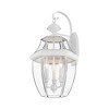 Collection: Monterey, Material: Brass, Finish Color: White, Width: 12.5", Height: 22.5", Depth: 11.75", Height From Outlet Box: 9.5", Backplate Width: 4.5", Backplate Length: 9", Lamping Type: Incandescent, Number Of Bulbs: 3, Wattage: 60 Watts, Moisture Rating: Dry Rated, Desc: The Monterey outdoor lighting features clean, crisp lines complemented by the graceful curves of beveled glass. Crafted from sturdy solid brass this handsome colonial styling makes this fixture a perfect addition to your outdoor spaces.,