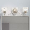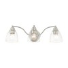 Collection: Montgomery, Material: Steel, Finish Color: Brushed Nickel, Width: 23", Height: 7", Depth: 7.5", Height From Outlet Box: 3.75", Backplate Width: 5.38", Backplate Length: 1", Lamping Type: Incandescent, Number Of Bulbs: 3, Wattage: 100 Watts, Moisture Rating: Dry Rated, Desc: Whether it's style or practical lighting, this vanity sconce is the perfect addition to your bathroom. This three-light fixture from the Montgomery Collection features clear hand-blown glass shades and is shown in a black finish. The clean graceful lines of the back plate complement the shades, creating an understated look that works well in most decors. Classic elegance combines with contemporary appeal to enhance any home in style.,