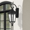 Collection: Morgan, Material: Aluminum, Finish Color: Textured Black, Width: 11", Height: 29", Depth: 15.75", Height From Outlet Box: 7.5", Backplate Width: 6", Backplate Length: 14", Lamping Type: Incandescent, Number Of Bulbs: 3, Wattage: 60 Watts, Moisture Rating: Dry Rated, Desc: With clear glass and a classic bronze finish, this outdoor wall lantern from the Morgan collection is an elegant way to illuminate traditional exteriors. Shade Included: Yes. ,