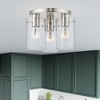 Collection: Munich, Material: Steel, Finish Color: Brushed Nickel, Width: 11", Height: 7.5", Hanging Method: Flush, Lamping Type: Incandescent, Number Of Bulbs: 3, Wattage: 40 Watts, Moisture Rating: Dry Rated, Desc: Illuminate your home with a bright design from the Munich collection. This large three-light flush mount features a brushed nickel finish with clear glass. Perfect for a contemporary or transitional luxury bathroom, bedroom, kitchen or hallway setting.,