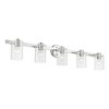 Collection: Munich, Material: Steel, Finish Color: Polished Chrome, Width: 42", Height: 8.5", Depth: 6.5", Height From Outlet Box: 6", Backplate Width: 5", Backplate Length: 0.75", Lamping Type: Incandescent, Number Of Bulbs: 5, Wattage: 60 Watts, Moisture Rating: Dry Rated, Desc: The Munich transitional five light vanity sconce will bring posh sophistication to your decor. The backplate and clear cylinder glass give this polished chrome finish a sleek, contemporary look.,