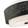 Collection: Noria, Material: Steel, Finish Color: Black, Width: 20", Height: 17.25", Hanging Method: Stem, Lamping Type: Incandescent, Number Of Bulbs: 4, Wattage: 240 Watts, Moisture Rating: Dry Rated, Desc: The Noria collection combines an intricate organic laser cut black finish steel frame surrounds an off-white fabric shade creating a casual warm light with a touch of ture vibe. This four-light drum pendant will have a commanding presence in many areas of your home. You can suspend it in the living room, over the dining table or bedroom. No. of Rods: 3 / Canopy Included: Yes / Shade Included: Yes / Canopy Diameter: 6 x 1 / Rod Length(s): 18.00. ,