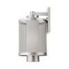 Collection: Nottingham, Material: Steel, Finish Color: Brushed Nickel, Width: 9", Height: 17", Depth: 9.75", Height From Outlet Box: 3.38", Backplate Width: 4.75", Backplate Length: 8", Lamping Type: Incandescent, Number Of Bulbs: 1, Wattage: 60 Watts, Moisture Rating: Dry Rated, Desc: The Nottingham outdoor collection has a clean, crisp look and contemporary appeal. This single light stainless steel large wall lantern has a textured black finish and features a sleek stainless steel mesh shade with satin opal white glass. Mounting Direction: Up/Down / Shade Included: Yes. ,