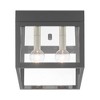 Collection: Nyack, Material: Brass, Finish Color: Scandinavian Gray, Width: 8", Height: 7", Length: 8", Hanging Method: Flush, Lamping Type: Incandescent, Number Of Bulbs: 2, Wattage: 60 Watts, Moisture Rating: Dry Rated, Desc: The dramatically simple shape and bold lines help define our Nyack ceiling mount. Featured in a antique brass finish, this outdoor ceiling mount has panels of clear glass.,