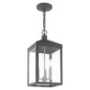 Collection: Nyack, Material: Steel, Finish Color: Scandinavian Gray, Width: 8.25", Height: 18.5", Chain Length: 36", Lamping Type: Incandescent, Number Of Bulbs: 3, Wattage: 60 Watts, Moisture Rating: Dry Rated, Desc: The dramatically simple shape and bold lines help define our Nyack wall lantern. Featured in a antique brass finish, this outdoor pendant lantern has panels of clear glass. Canopy Included: Yes / Shade Included: Yes / Canopy Diameter: 5 x 0.75. ,