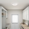 Collection: Oasis, Material: Steel, Finish Color: Brushed Nickel, Width: 12.25", Height: 4", Hanging Method: Flush, Lamping Type: Incandescent, Number Of Bulbs: 2, Wattage: 60 Watts, Moisture Rating: Damp Rated, Desc: In a brushed nickel finish paired with white alabaster glass, this sleek flush mount will complement your transitional decor with its clean, stylish look. Shade Included: Yes. ,
