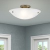 Collection: Oasis, Material: Steel, Finish Color: Antique Brass, Width: 20", Height: 8", Depth: 20", Hanging Method: Flush, Lamping Type: Incandescent, Number Of Bulbs: 3, Wattage: 75 Watts, Moisture Rating: Dry Rated, Desc: This ceiling mount features contour lines and a bowed profile. With an understated design, this piece is perfect for any space in your home. Featuring a white alabaster glass and polished brass finish, this fixture will effortlessly blend with your existing decor. Canopy Included: Yes / Shade Included: Yes / Canopy Diameter: 5.00. ,