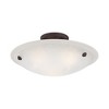 Collection: Oasis, Material: Steel, Finish Color: Bronze, Width: 16", Height: 7", Lamping Type: Incandescent, Number Of Bulbs: 3, Wattage: 75 Watts, Moisture Rating: Dry Rated, Desc: This semi flush features contour lines and a bowed profile. With an understated design, this piece is perfect for any space in your home. Featuring a honey alabaster glass and bronze finish, this fixture will effortlessly blend with your existing decor. Canopy Included: Yes / Shade Included: Yes / Canopy Diameter: 5.00. ,