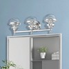 Collection: Oldwick, Material: Steel, Finish Color: Polished Chrome, Width: 24", Height: 8.25", Depth: 7.25", Height From Outlet Box: 4.5", Backplate Width: 5.13", Backplate Length: 1", Lamping Type: Incandescent, Number Of Bulbs: 3, Wattage: 75 Watts, Moisture Rating: Dry Rated, Desc: Sleek and simple lines define this beautiful polished brass finish three-light vanity sconce from the Oldwick collection. The clean, bold look of modernity blends with a raw industrial inspiration and hand blown clear glass give this design a versatile and eclectic look that works with nearly any style of home decor. Mounting Direction: Up/Down / Shade Included: Yes. ,