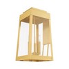 Collection: Oslo, Material: Brass, Finish Color: Satin Brass, Width: 10.5", Height: 20", Depth: 12", Height From Outlet Box: 5", Backplate Width: 5", Backplate Length: 12", Lamping Type: Incandescent, Number Of Bulbs: 3, Wattage: 60 Watts, Moisture Rating: Dry Rated, Desc: This updated industrial design comes in a tapering solid brass black frame with a sleek, straight-lined look. Clear glass panels offer a full view of the brushed nickel accents, that will house the bulb of your choice. Shade Included: Yes. ,