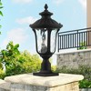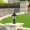 Collection: Oxford, Material: Aluminum, Finish Color: Textured Black, Width: 11", Height: 22", Lamping Type: Incandescent, Number Of Bulbs: 3, Wattage: 60 Watts, Moisture Rating: Wet Rated, Desc: From the Oxford outdoor lantern collection, this traditional design will add curb appeal to any home. It features a handsome, antique-style post plate and decorative arm. Clear water glass cast an appealing light and lends to its vintage charm. Wall plate, arm and other details are all in a bronze finish. Shade Included: Yes. ,