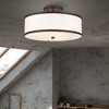 Collection: Park Ridge, Material: Steel, Finish Color: Bronze, Width: 15", Height: 8", Lamping Type: Incandescent, Number Of Bulbs: 3, Wattage: 60 Watts, Moisture Rating: Dry Rated, Desc: Update your decor with this sleek semi flush mount design. The shaded frame comes in a bronze finish which nicely complements the hand crafted off-white fabric hardback shade. Canopy Included: Yes / Shade Included: Yes / Canopy Diameter: 5.00. ,