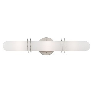 Collection: Pelham, Material: Steel, Finish Color: Brushed Nickel, Width: 19.75", Height: 4.5", Depth: 3.75", Height From Outlet Box: 2", Backplate Width: 4.5", Lamping Type: Incandescent, Number Of Bulbs: 3, Wattage: 60 Watts, Moisture Rating: Dry Rated, Desc: Create warm ambient lighting with this contemporary style bath fixture. It's soft brushed nickel finish creates sleek lines in the frame. It features a hand blown satin opal white glass, ideal for giving your room a soft light. This fixture can be mounted vertically or horizontally. Mounting Direction: Up/Down / Shade Included: Yes. ,