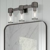 Collection: Quincy, Material: Steel, Finish Color: Black Chrome, Width: 22.5", Height: 9.75", Depth: 4", Height From Outlet Box: 7.38", Backplate Width: 4.75", Backplate Length: 4.75", Lamping Type: Incandescent, Number Of Bulbs: 3, Wattage: 60 Watts, Moisture Rating: Dry Rated, Desc: The stunning Quincy vanity sconce features a polished brass finish with clear glass. This sleek design will brighten up any bathroom.,
