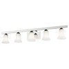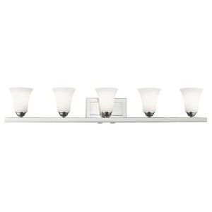 Collection: Ridgedale, Material: Steel, Finish Color: Polished Chrome, Width: 43.25", Height: 7", Depth: 6.5", Height From Outlet Box: 4", Backplate Width: 7", Backplate Length: 4.25", Lamping Type: Incandescent, Number Of Bulbs: 5, Wattage: 100 Watts, Moisture Rating: Damp Rated, Desc: Bring a simple, yet eye-catching style into your home with this lovely bathroom light. The geometric design will add interest to powder rooms and bathrooms. Finished in antique brass, this design will bring light for years to come. Mounting Direction: Up/Down / Shade Included: Yes. ,