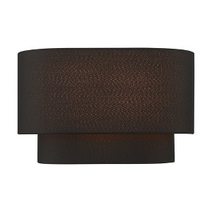 Collection: Sentosa, Material: Steel, Finish Color: Black, Width: 13", Height: 8", Depth: 3.95", Height From Outlet Box: 4", Backplate Width: 6.5", Backplate Length: 7", Lamping Type: Incandescent, Number Of Bulbs: 2, Wattage: 40 Watts, Moisture Rating: Dry Rated, Desc: The two-light black finish Sentosa ADA wall sconce has a modern and retro appeal. The hand-crafted black fabric hardback drum shades are set off by an inner silky orange fabric which creates a versatile effect. Perfect fit for the living room, dining room, kitchen or bedroom.,