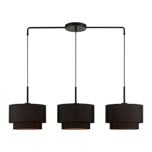 Collection: Sentosa, Material: Steel, Finish Color: Black, Width: 13", Height: 22.25", Length: 49", Hanging Method: Cord, Lamping Type: Incandescent, Number Of Bulbs: 3, Wattage: 180 Watts, Moisture Rating: Dry Rated, Desc: The Sentosa collection has a modern and retro appeal. The hand-crafted black fabric hardback shades are set off by the silky orange fabric on the inside creating an intriguing effect. The three-light double drum shade adds character to this handsomely styled linear chandelier. Perfect fit for the living room, dining room, kitchen and bedroom. This sleek design is shown in a black finish.,