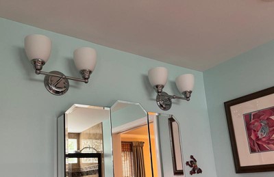 We love these new lights in our main bath. The previous ones looked awkward as uplights and the dark bronze finish called too much attention to them. These sconces match our polished chrome fixtures perfectly and make the room sparkle. They arrived promptly and, thanks to careful packaging, in perfect condition. Our electrician installed them. We couldn't be more pleased with our purchase.