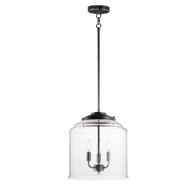 Collection: Stoneridge, Material: Steel, Finish Color: Textured Black, Width: 8.5", Height: 16", Hanging Method: Cord, Lamping Type: Incandescent, Number Of Bulbs: 1, Wattage: 60 Watts, Moisture Rating: Dry Rated, Desc: The Stoneridge collection hints at a casual rustic vibe. It features beautifully rounded steel straps held together by rivets. The cluster of lights are reminiscent of the sputnik design from the 50s and 60s mid-century modern era. This single-light mini pendant is shown in a textured black finish with brushed nickel accents. It will be a great feature in your modern loft or cabin as well as any transitiol style interior. Canopy Included: Yes / Shade Included: Yes / Canopy Diameter: 5.13 x 1. ,