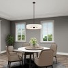 Collection: Venlo, Material: Steel, Finish Color: Bronze/Antique Brass, Width: 26", Height: 13.5", Hanging Method: Stem, Lamping Type: Incandescent, Number Of Bulbs: 5, Wattage: 200 Watts, Moisture Rating: Dry Rated, Desc: The Venlo collection is both modern and versatile. The bronze finish with antique brass finish accents and hand-crafted oatmeal colored fabric hardback shade sets a pleasant mood. This sleek large five-light drum pendant is a perfect fit for the living room, dining room, kitchen and bedroom. No. of Rods: 3 / Canopy Included: Yes / Shade Included: Yes / Canopy Diameter: 5.13 x 0.75 / Rod Length(s): 18.00. ,