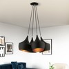 Collection: Waldorf, Material: Steel, Finish Color: Black, Width: 23", Height: 18", Hanging Method: Cord, Lamping Type: Incandescent, Number Of Bulbs: 4, Wattage: 240 Watts, Moisture Rating: Dry Rated, Desc: The distinctive shape of the Waldorf 4-light teardrop cluster pendant in a black finish makes it a wonderful accent for any setting. A gleaming gold finish on the interior of the metal shades brings a refined touch of style. Canopy Included: Yes / Canopy Diameter: 6.00 / Shade Included: Yes / Shade Dimensions: 9.5 x 11. ,
