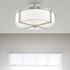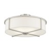 Collection: Wesley, Material: Steel, Finish Color: Brushed Nickel, Width: 16", Height: 9.25", Lamping Type: Incandescent, Number Of Bulbs: 3, Wattage: 60 Watts, Moisture Rating: Dry Rated, Desc: A handsome semi flush mount in warm, natural tones. This semi flush mount light will instantly transform a room from dreary to chic. The bronze finish on the frame complements the exquisite, hand crafted off white hardback drum shade and a satin opal glass diffuser guarantees a soft illumination. Canopy Included: Yes / Shade Included: Yes / Canopy Diameter: 4.75. ,