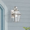 Collection: Westover, Material: Brass, Finish Color: Brushed Nickel, Width: 7", Height: 12.5", Depth: 7.5", Height From Outlet Box: 6", Backplate Width: 4.75", Backplate Length: 6", Lamping Type: Incandescent, Number Of Bulbs: 1, Wattage: 100 Watts, Moisture Rating: Dry Rated, Desc: Inspired by the historic look and romantic feel of gas-burning lamps, our Westover collection is reminiscent of antique gas lights, which are still popular in Southern cities like Charleston and New Orleans. This solid brass piece features one light behind large panes of clear beveled glass. Shade Included: Yes. ,