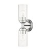 Collection: Whittier, Material: Steel, Finish Color: Polished Chrome, Width: 4.75", Height: 15.5", Depth: 4.75", Height From Outlet Box: 7.75", Backplate Width: 4.75", Backplate Length: 0.75", Lamping Type: Incandescent, Number Of Bulbs: 2, Wattage: 60 Watts, Moisture Rating: Dry Rated, Desc: Illuminate your home with a bright design from the Whittier collection. This two-light vanity sconce features a polished chrome finish with clear glass. Perfect for a contemporary or transitional luxury bathroom setting.,